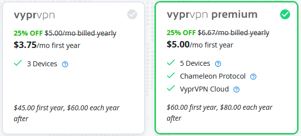帐户范围从每月 5 美元到 20 美元不等,还有额外的定期折扣。
